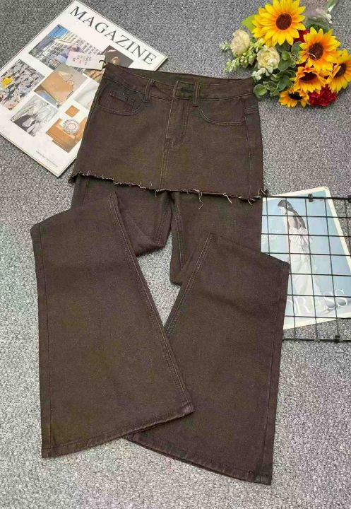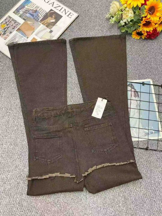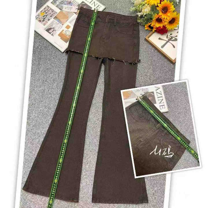 春季新款网红爆款复古做旧设计感假两件牛仔微喇裤,独立包装带吊牌,码数XS--XL码,266件,全清8.9元超低价秒杀!分货加一!