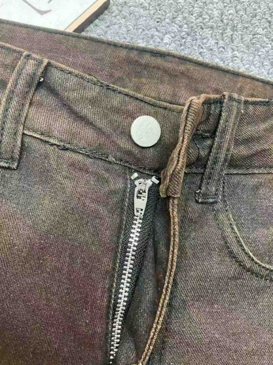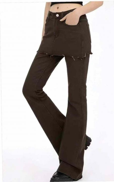 春季新款网红爆款复古做旧设计感假两件牛仔微喇裤,独...