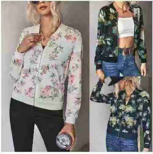 6.8清450件欧美风印花拉链开衫长袖外套女夹克 码数S-3XL 独立包装...