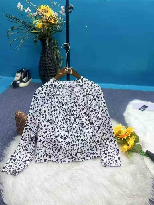 新款韩式V领碎花长袖衬衫128件,单款3个花色,均码,独立包装,全清6.8