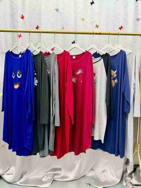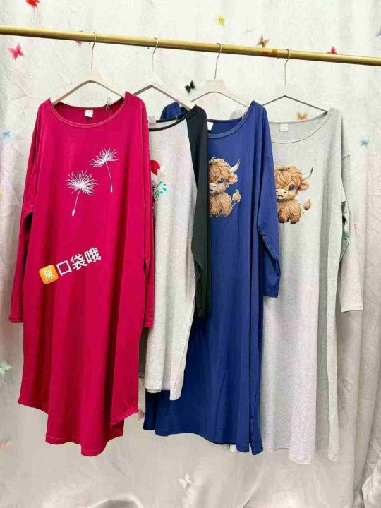 春季时尚百搭圆领印花长袖宽松中长款连衣裙、印花款式有很多、四个款有口袋,另外四个款️口袋、独立包装.
