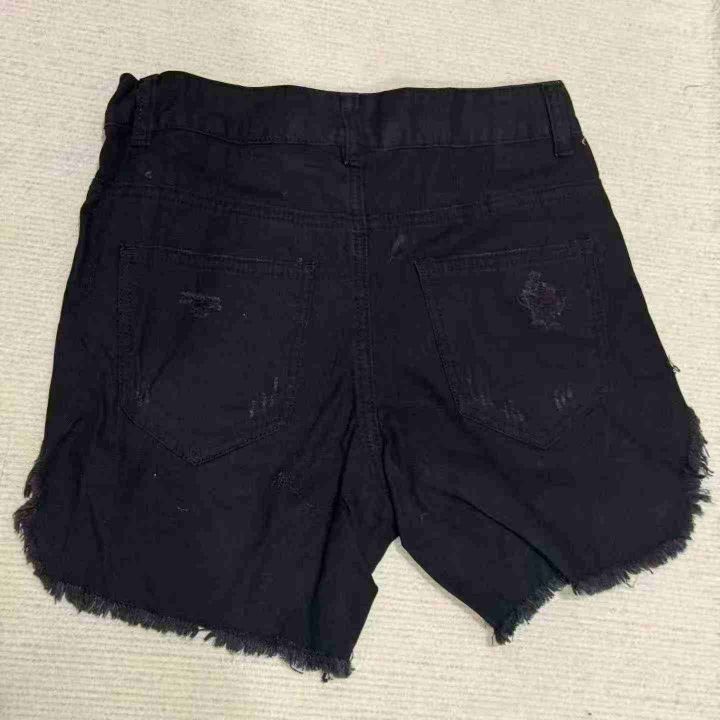 以纯正品剪标款女装中腰黑色牛仔短裤侧边高开叉辣妹毛...