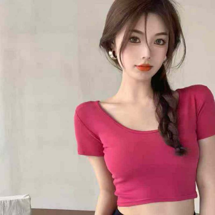 电商仓回收827件辣妹纯色短上衣甜辣风短袖T恤,码数XS-XL。面料柔软有弹性,独立包装,分货➕0.5