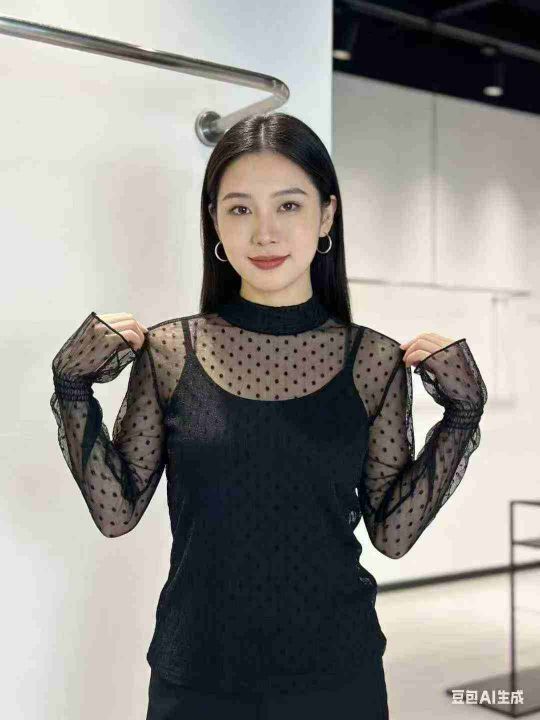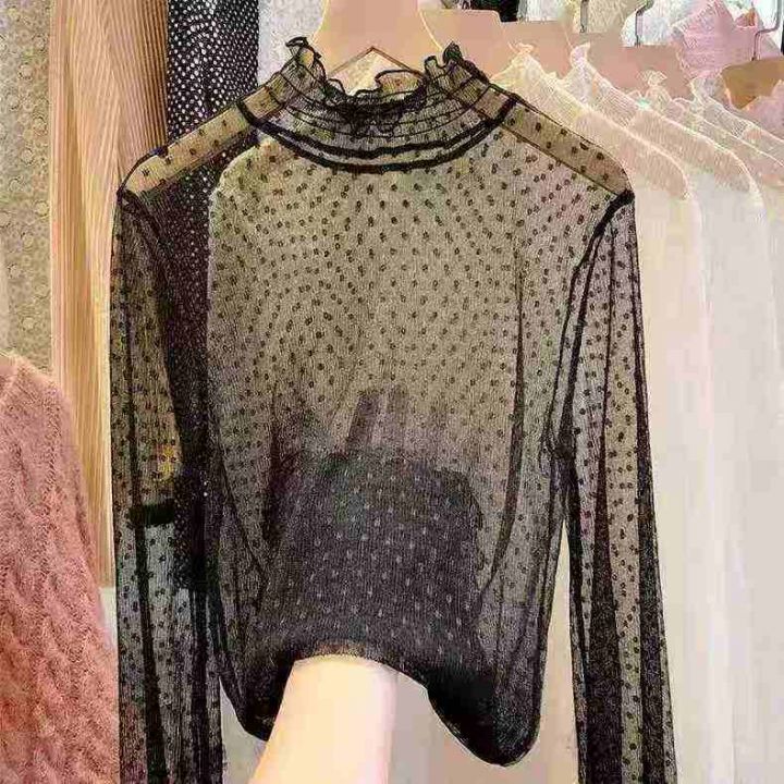 75件半高领镂空蕾丝打底衫女洋气长袖内搭超仙网纱上衣...