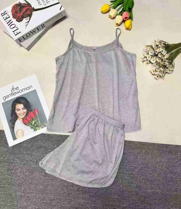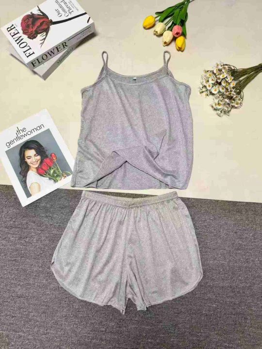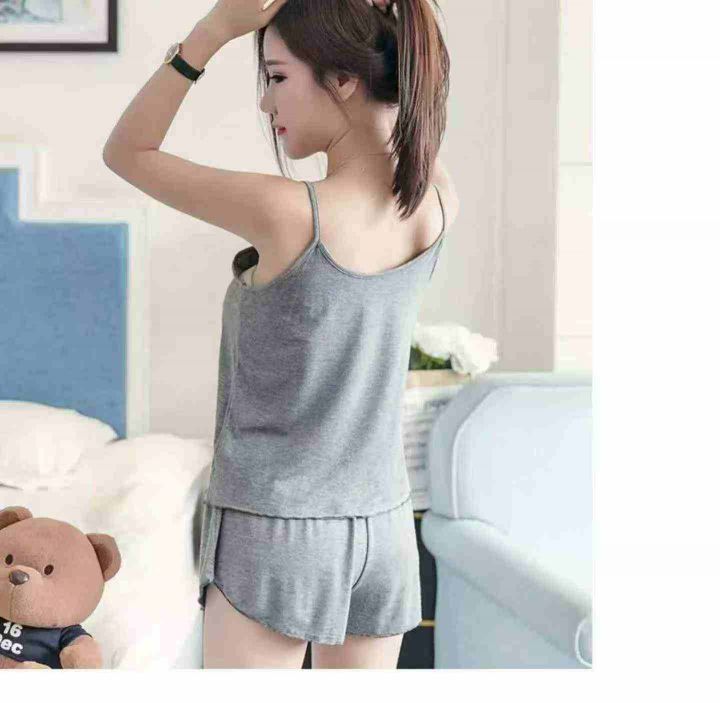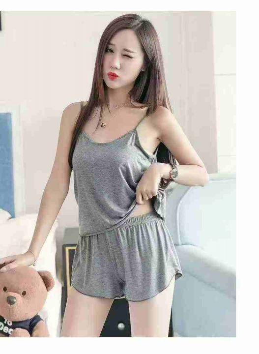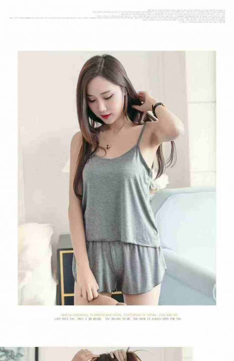 夏季性感吊带短裤女薄款睡衣两件套大码春秋家居服套装(灰色为主)