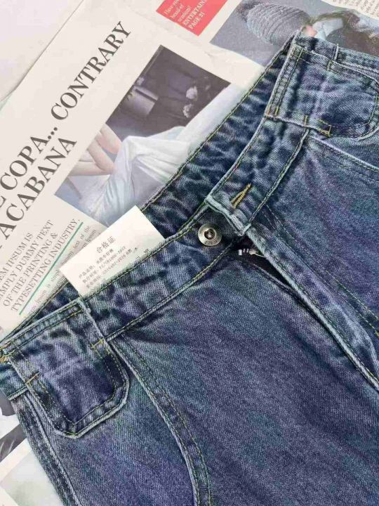 大口袋设计高腰宽松女士牛仔裤,单款单色,独立包装,...
