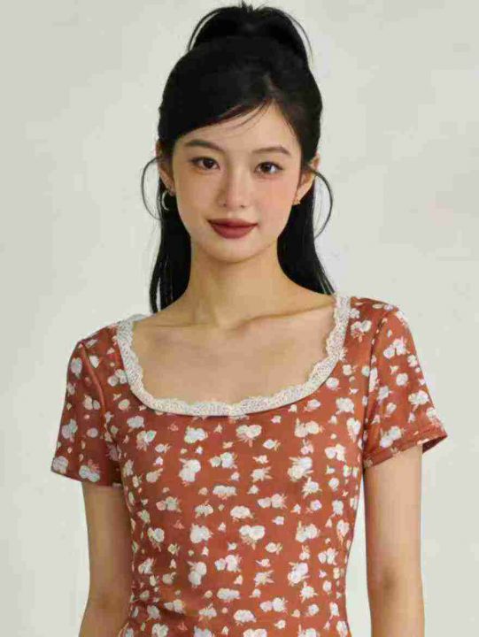 3.5清电商仓回收700件辣妹复古碎花蕾丝纯欲短袖T恤,...