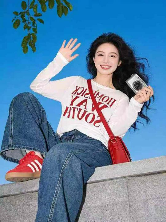 女装长袖T恤女宽松圆领印花上衣.一个颜色,图案有很多种.独立包装.码数:1X...