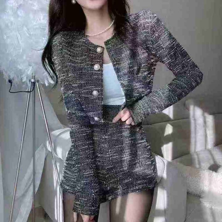 14.8清170套女装小香风外套短裤 两件套 复古圆领长袖格纹小香风粗花呢外套...