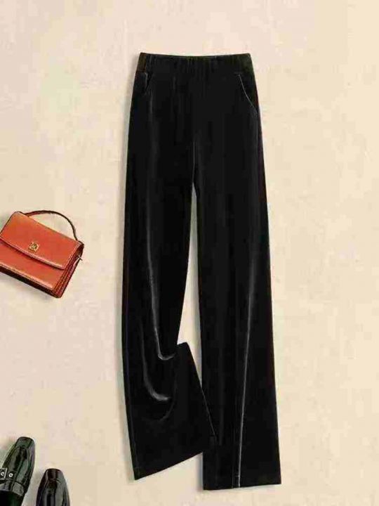 12.8清200条高端金丝绒直筒阔腿裤女春夏新款高腰垂感大码休闲裤码数L-4XL ...