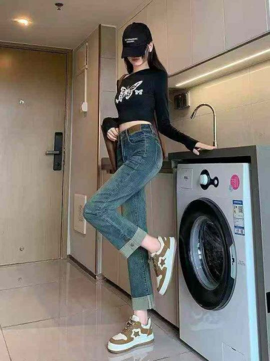复古高腰翻边撞色小个子弹力烟管牛仔裤,单款单色,独立包装,数量260条,2...