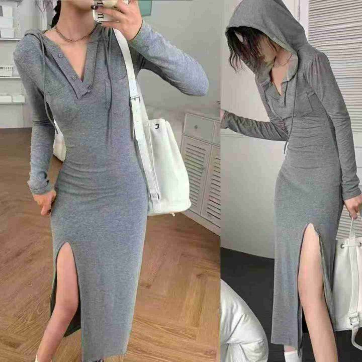 辣妹气质连衣裙148件8.5,面料有弹力,连帽款,后领包...