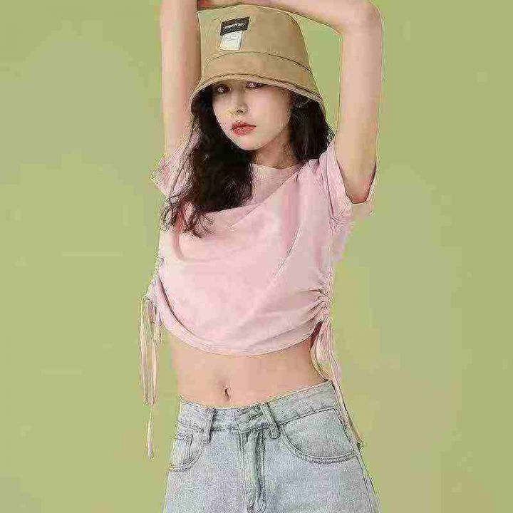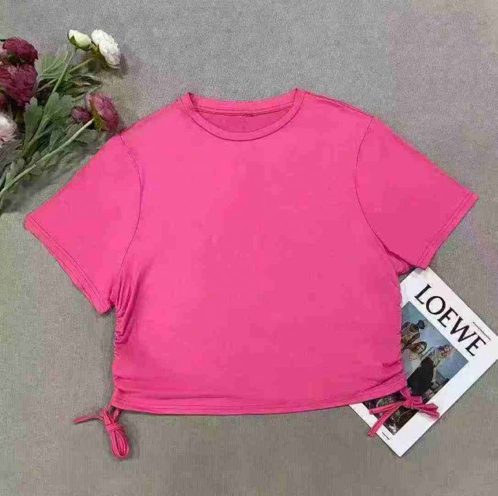 600多件美式正肩抽绳甜美辣妹设计感小众减龄修身短款体恤,尺码:XL~4XL,面料柔软有弹力,后领包边包条,零次品,全清捡漏价5.8元,分
