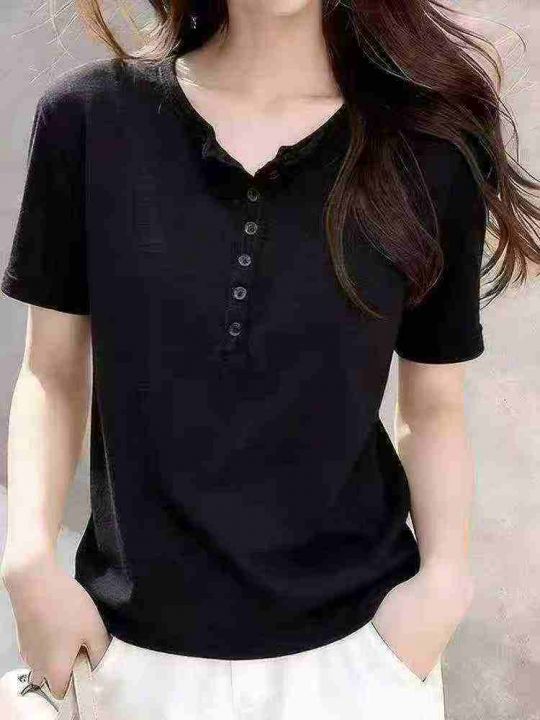 ☆5.8元,粗条冰丝辣妹T,夏季韩版修身短袖排扣靓妹T恤,透气舒适,150件,1-4码,独立包装吊牌,全清5.8元,不分货