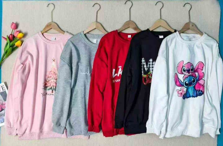 ☆4.9元,大版落肩圆领卫衣,鱼鳞布面料,后领包边,多个印花图案,做工精...