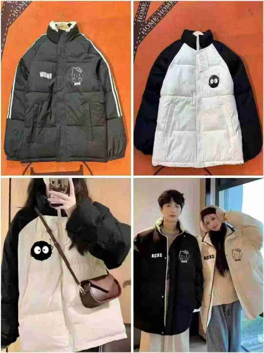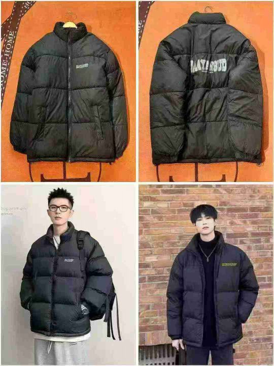 上身棉服外套[太阳]25元,6800件,加厚棉服男女秋冬季新款宽松韩版潮牌立领、拼接、连帽面包服棉服外套,潮流款[哇],图案多多[色],部分AB面印花[鼓掌],独立包装,带吊牌