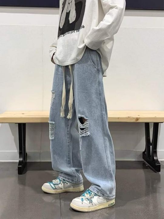 春夏季新款男士复古松紧腰破洞直筒牛仔裤,独立包装带吊牌,码数M-2XL码, ...