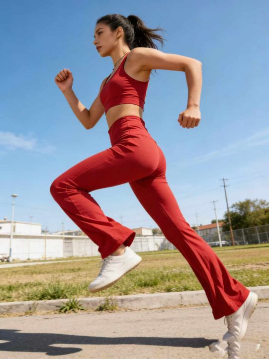 外贸原单高腰阔腿微喇瑜伽裤,高弹力,带独立包装,码数S-2XL,299件,大部份红色,福利价全清5.8元分货加1