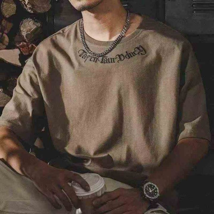 夏季潮牌纯棉字母刺绣短袖t恤男ins胖子宽松大码圆领半袖T恤 1098 件 码数:XL-8XL码 (3点-10点) 独立包装 分货➕1,(货号330#63)