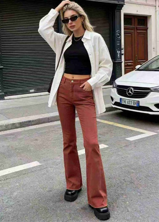 春季新款品牌外贸原单美式宽松高弹力洗水棉微喇叭牛仔...