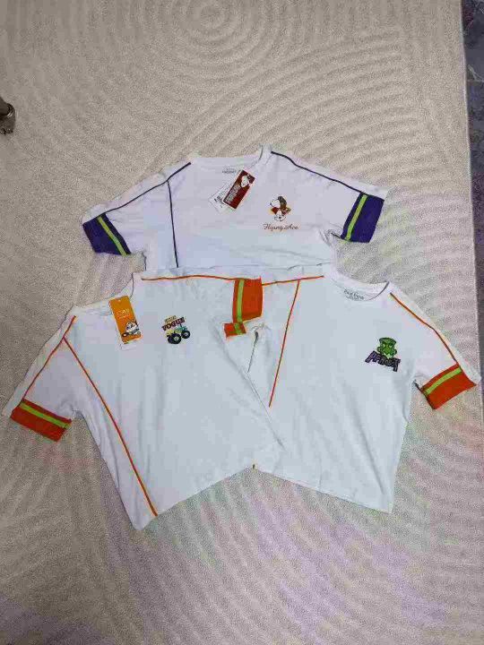 品牌童裝拼袖夏装T恤,数量5000件左右,尺码110--160,整款三个色,三个品牌(史努比、大嘴猴、森马) 可分品牌出,后领包边,独立包装带吊牌,大货干净整洁