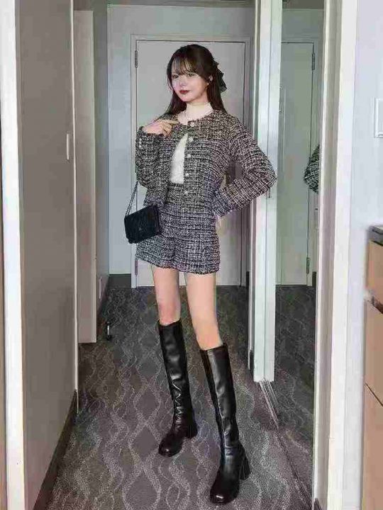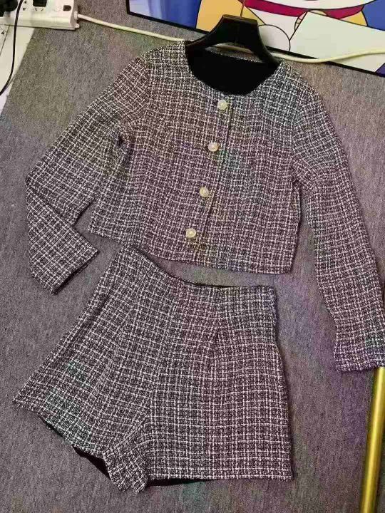 14.8清170套女装小香风外套短裤 两件套 复古圆领长袖格纹小香风粗花呢外套高腰短裤套装 码数XS- L 独立拉链包装