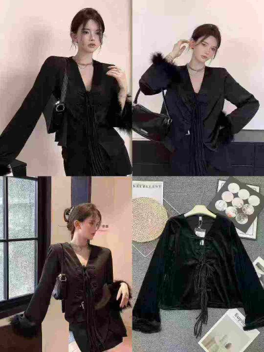 ☕️新中式国风盘扣丝绒上衣连衣裙 ,四个款都是黑色,数量80件左右 ,全清...