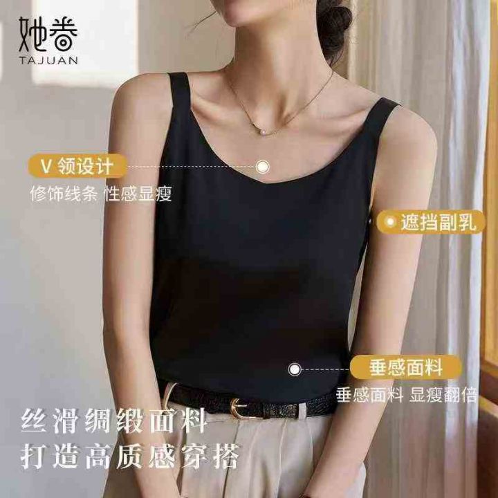 全清价4.6元时尚百搭V领吊带背心真丝缎面内搭打底,独...