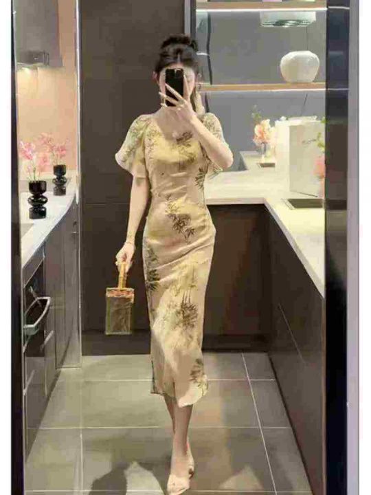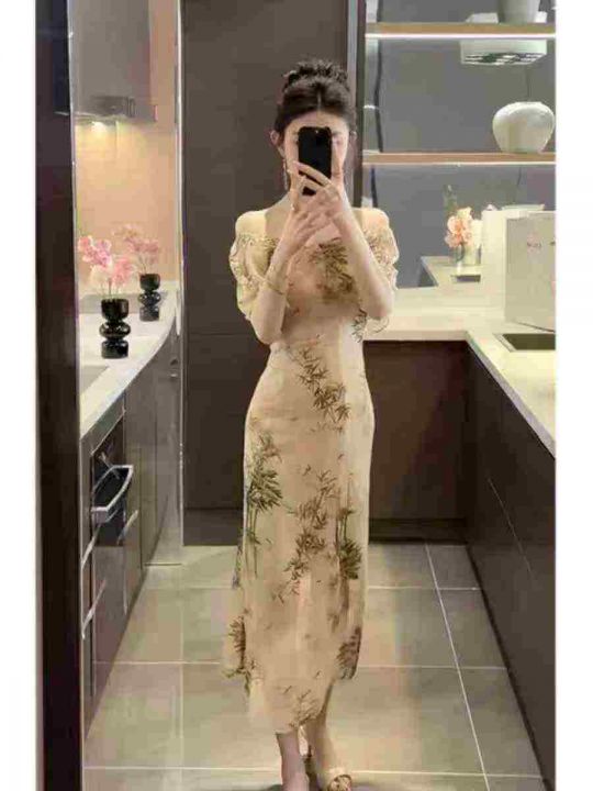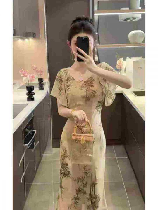 上新全清:14.9一件新中式国风水墨画气质高级连衣裙,...