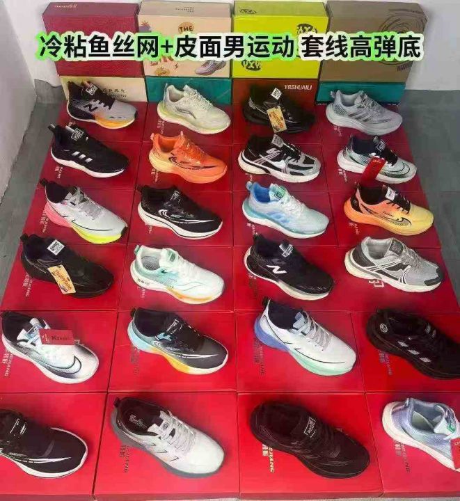 冷粘鱼丝网+皮面男运动整单打杂,至少3连号高弹底,超...