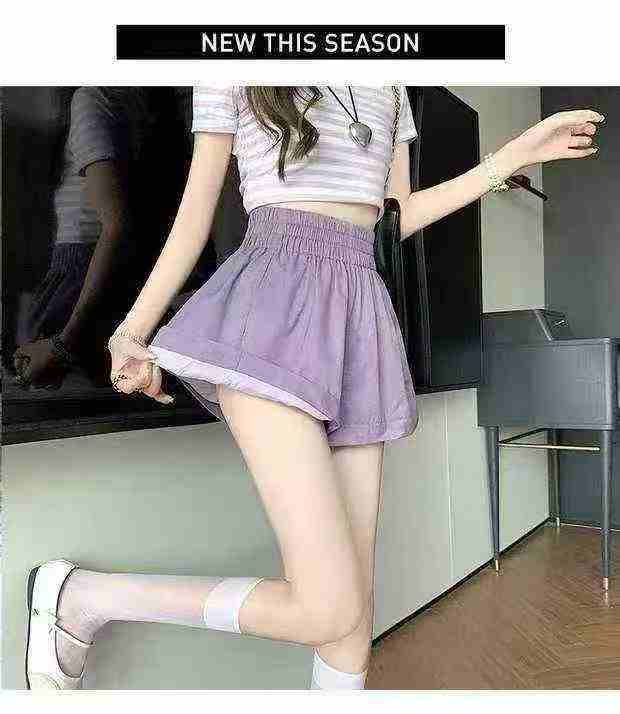 斜纹棉辣妹阔腿短裤女 33条,全清6.8元,正品独立包装,码数~L 单码单色,洗水棉短裤女夏季紫色裤子2026新款松紧高腰宽松阔腿辣妹热裤