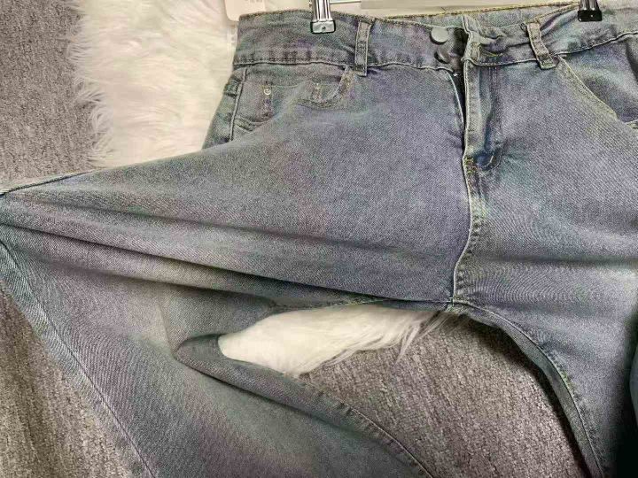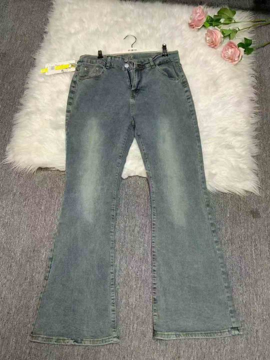 水洗黄泥染微喇叭牛仔裤女秋冬新款高腰显瘦辣妹40件,独立包装带吊牌,尺码3XL~5XL全清福利价8.8元