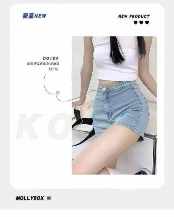 夏季新款高腰辣妹性感弹力显瘦洗水棉牛仔短裤,独立包装带吊牌,码数S--2XL...