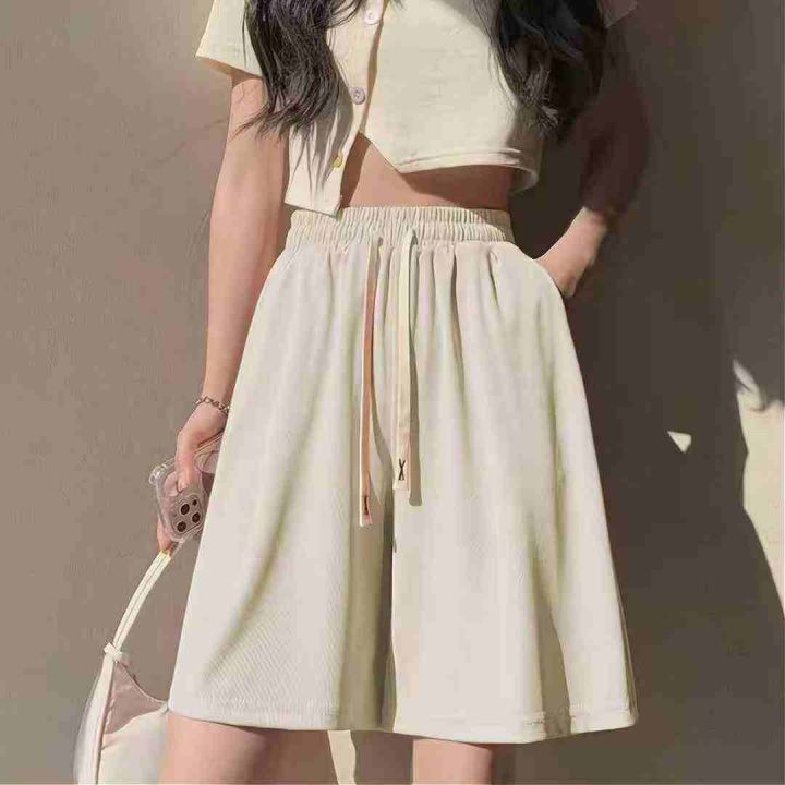3507条\' 冰丝短裤女直筒宽松五分高腰夏季外穿垂感运动休闲裤子,独立包装,码数M-2XL,分货➕1,货号001#30