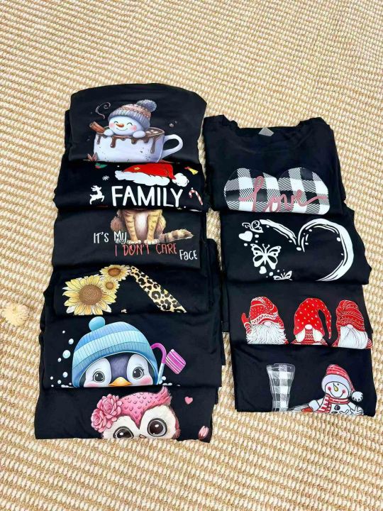 女装长袖T恤女宽松圆领印花上衣.一个颜色,图案有很多种.独立包装.