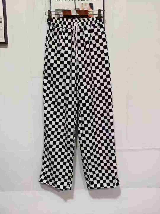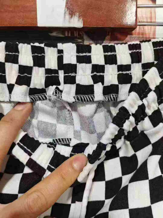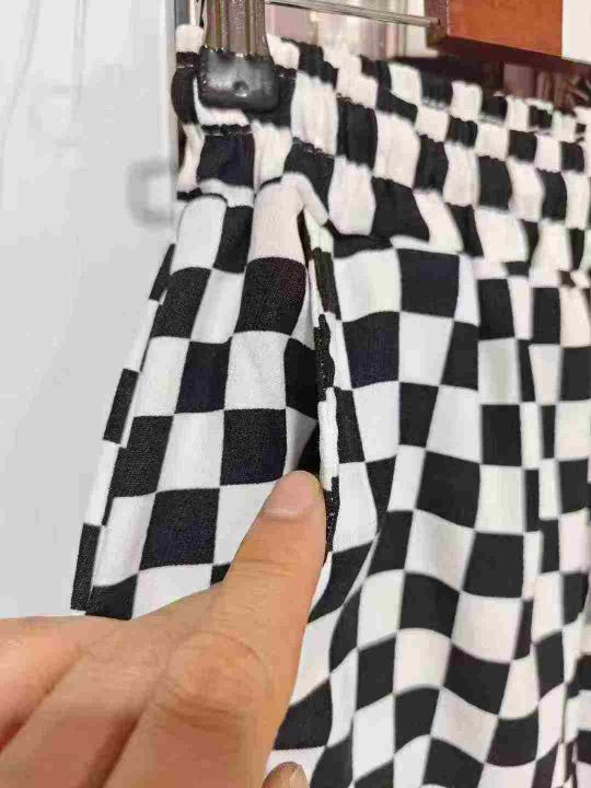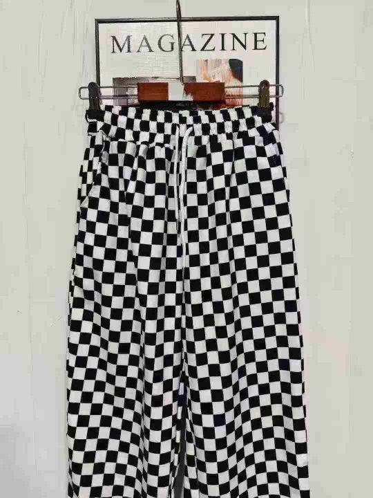 113条棋盘格休闲运动女裤新款宽松卫裤黑白格子直筒阔腿裤,码数1-5,独立包装,全清8.8分+1