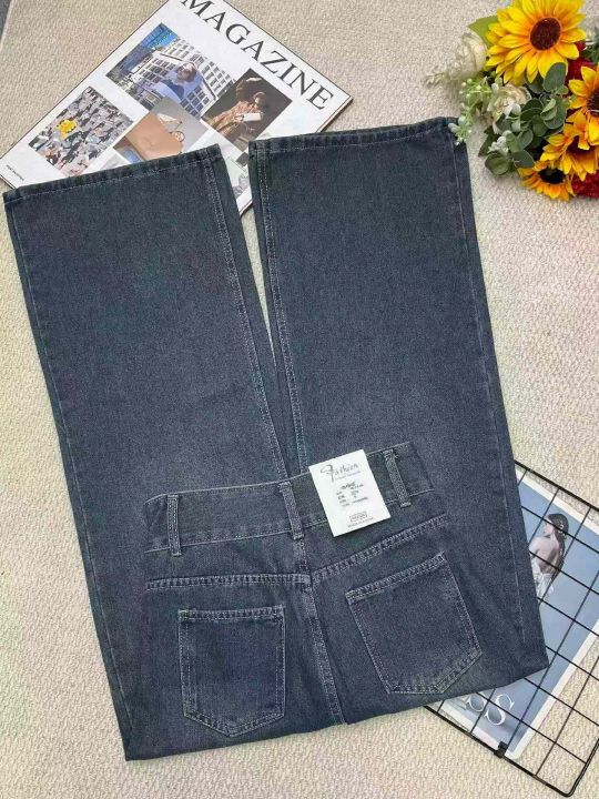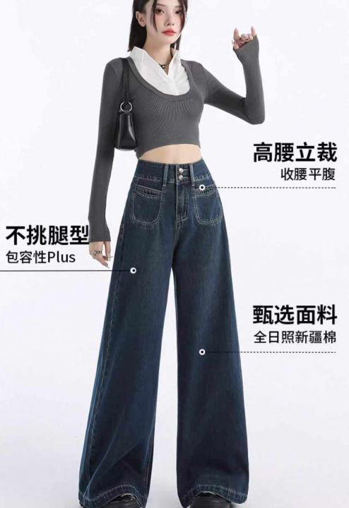 春夏季新款网红爆款复古直筒阔腿牛仔裤,独立包装带腰...