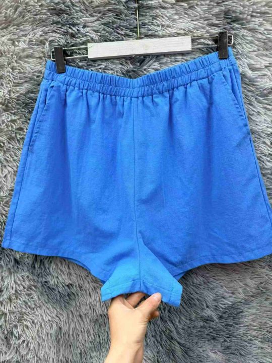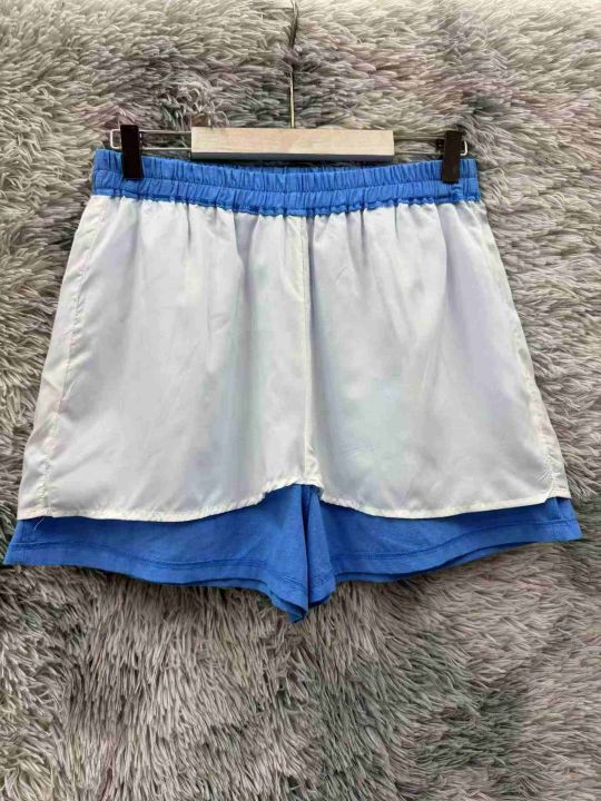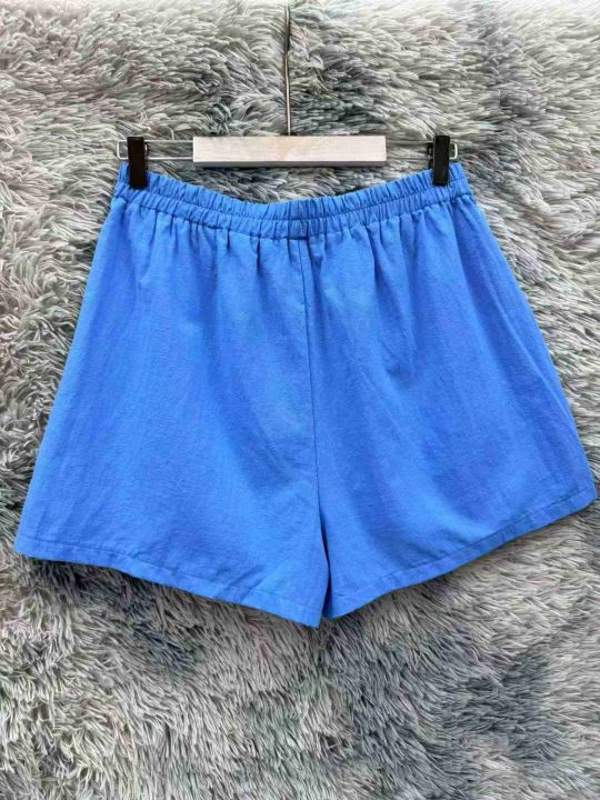 蓝色短裤女夏季新薄款美式松紧腰运动A字休闲裤、独立包装、带内衬.码数xs—2XL、数量82件.全清.全清.全清