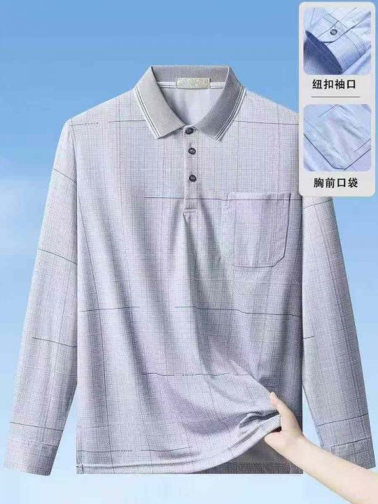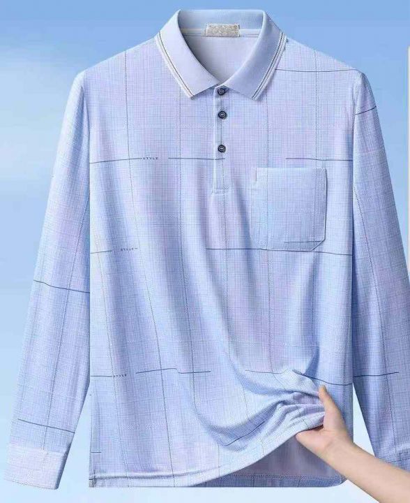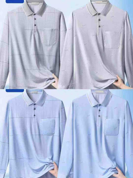 男装翻领冰丝白底长袖T恤☕️2700件全清10.8元分货11.8元,一捆齐色齐码数50 52 54,独立包装,小整多颜色花型,左胸部都有口袋,男装翻领长袖t恤冰丝休闲中老年白底长袖T恤