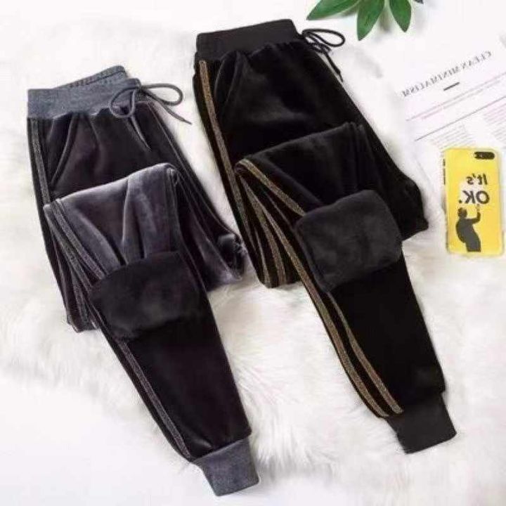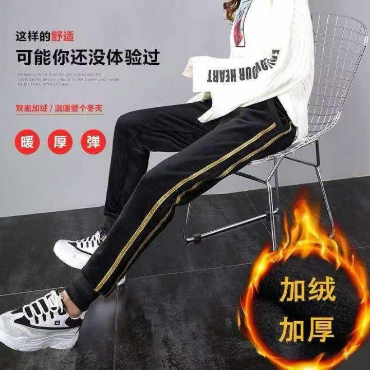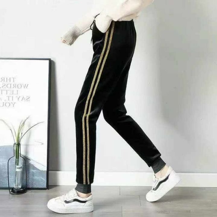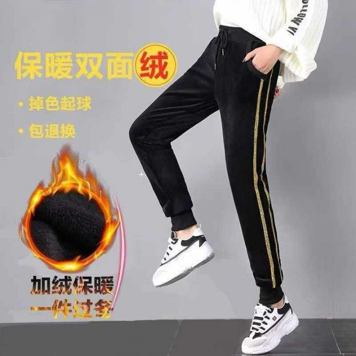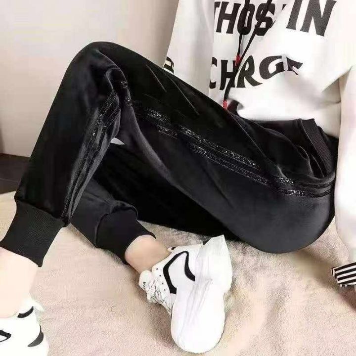 金丝绒运动裤女秋冬新款加绒加厚束脚哈伦裤侧条宽松时尚休闲卫裤,255件,码数l-4xl,独立包装,全清8.8元