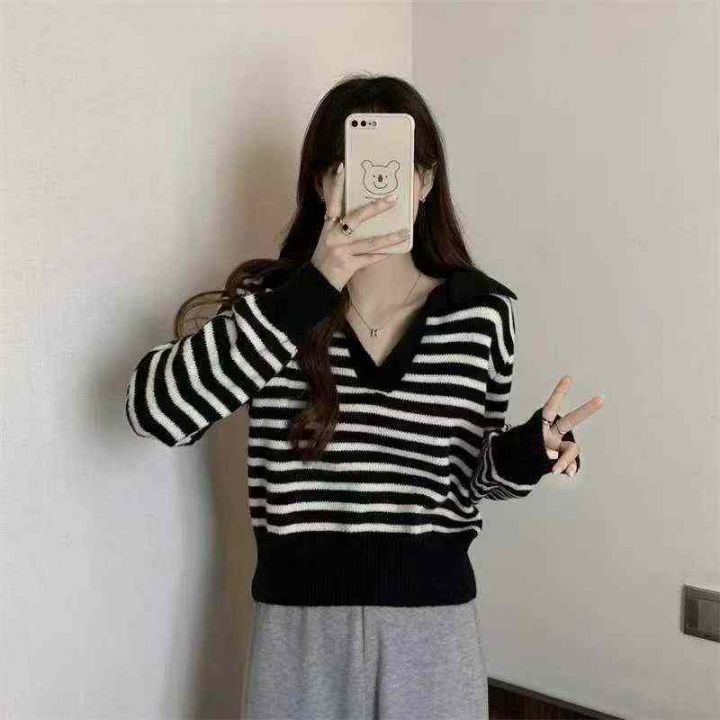 春季新款撞色条纹韩系polo领长袖针织衫,独立包装,均码面料柔软舒适弹力大...
