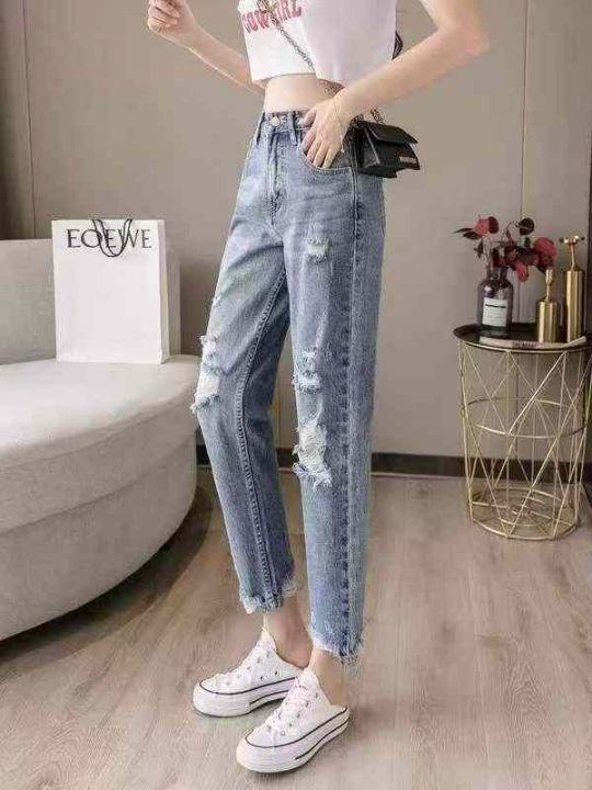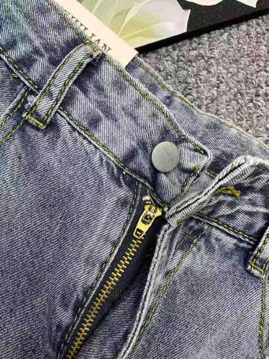 春夏季新款复古网红设计款破洞牛仔裤,独立包装带腰卡...