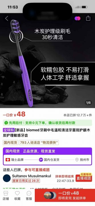 新品牙刷到货5000支左右,平台都卖几十块钱一支,性价...
