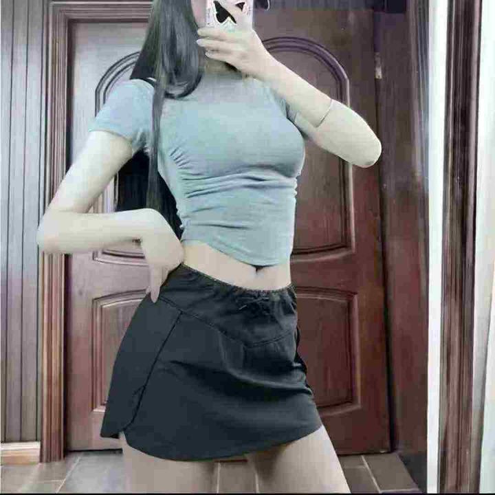 285件短款木耳边网纱打底衫女短袖内搭纱衣圆领新款亮丝半截蕾丝上衣,双层...