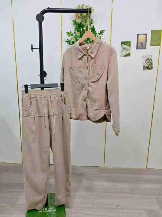 冬季加绒加厚时尚套装女新款女士减龄灯芯绒外套妈妈装...