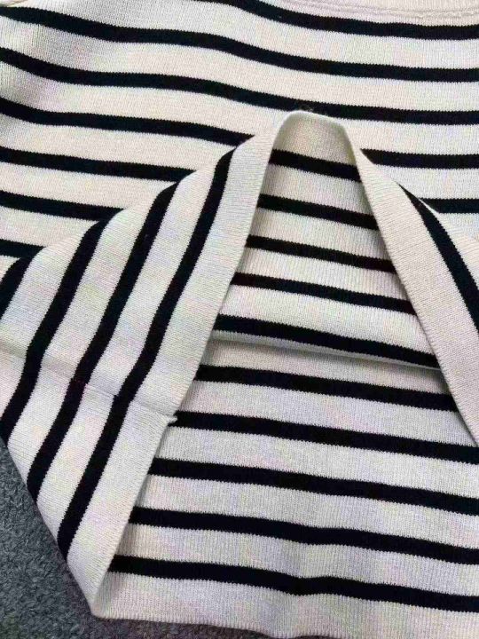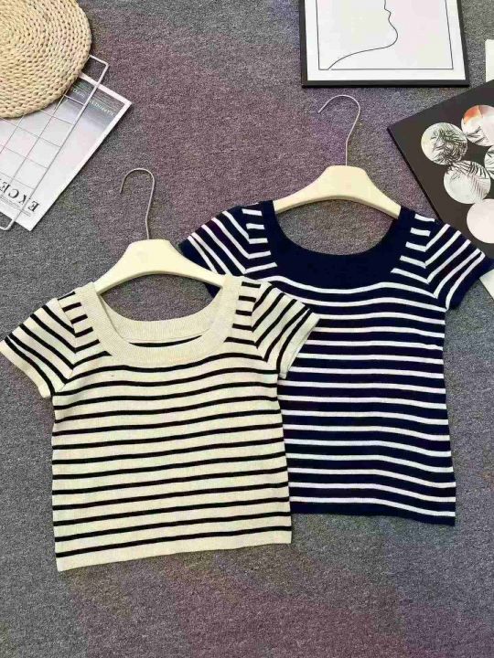 ☕️黑白条纹短袖u领露锁骨针织t恤女夏天薄款高级感正肩冰丝上衣580件全清7.8元 ,分货8.8元,均码高弹力,单款2色,辣妹针织条纹T恤[庆祝][庆祝][庆祝]