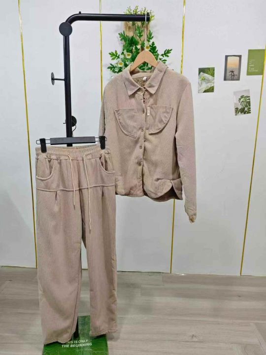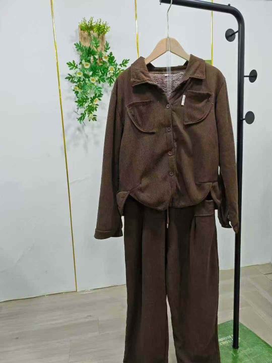 冬季加绒加厚时尚套装女新款女士减龄灯芯绒外套妈妈装...