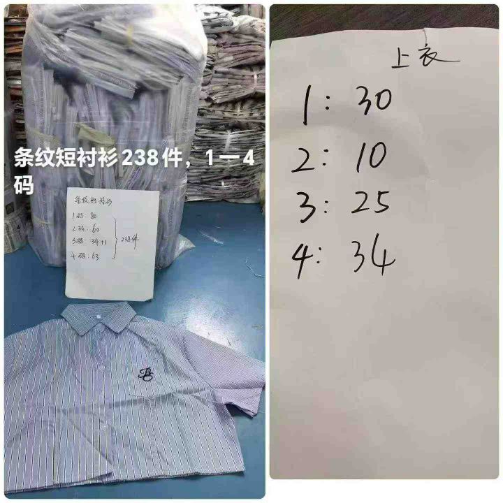蓝色竖条纹短袖衬衫99件7.8,Polo领,图案刺绣,码数1-4码(S-XL),独立包...