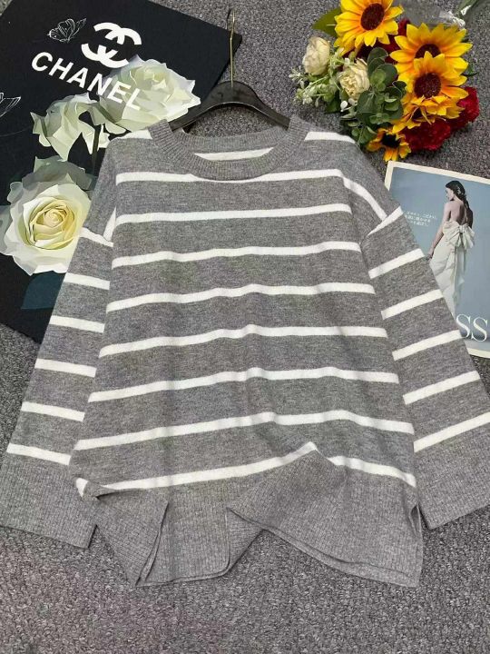 春季新款品牌原单撞色条纹宽松落肩圆领套头毛衣,独立包装带吊牌,面料软糯厚实,均码宽松大版,142件,全清7.9元超低价秒杀!