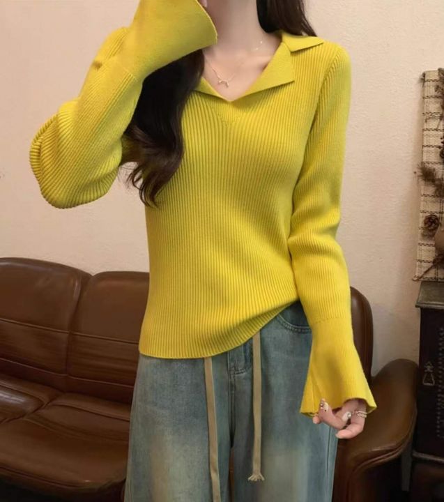 春秋新款法式复古净版简约宽松Polo领坑条包芯纱套头毛衣,独立包装,均码面料柔软舒适弹力大,106件,全清6.9元超低价秒杀!